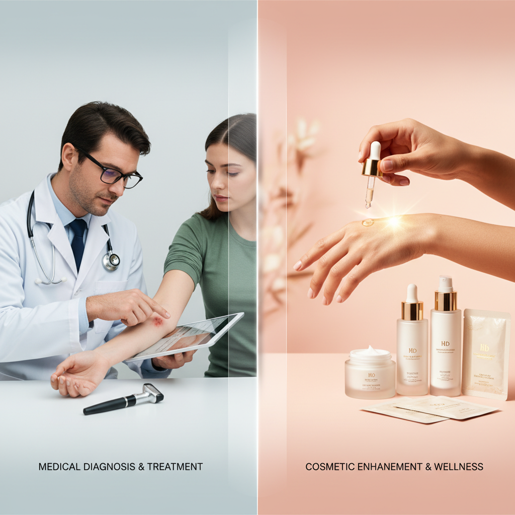 Membedakan antara perawatan medis dan kosmetik terkadang bisa tipis. Kuncinya terletak pada diagnosis dan rekomendasi dari dokter spesialis kulit. Jika Anda memiliki masalah kulit, langkah pertama adalah berkonsultasi dengan dokter di Fasilitas Kesehatan Tingkat Pertama (FKTP) Anda (Puskesmas atau atau Klinik Pratama). Jika diperlukan, dokter akan memberikan rujukan ke dokter spesialis kulit.
