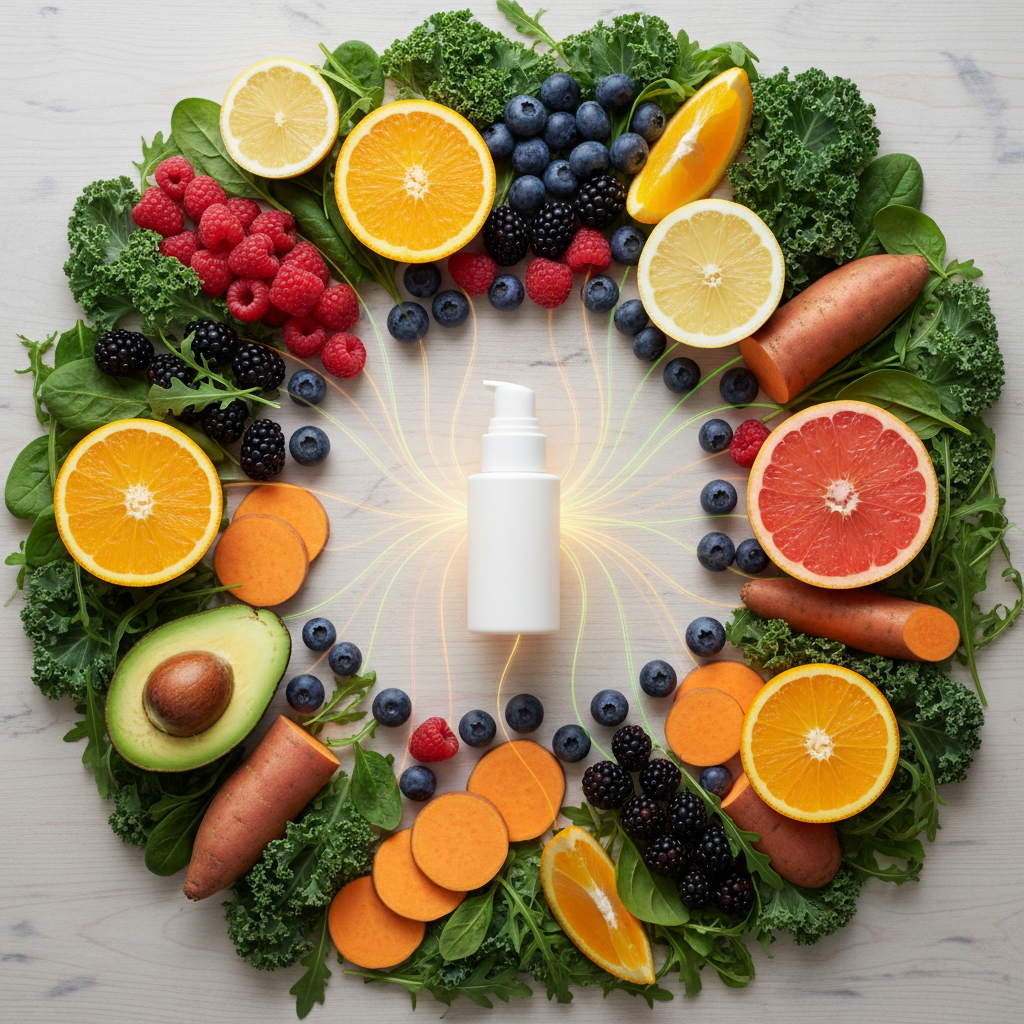 Vitamin C adalah antioksidan kuat yang esensial untuk sintesis kolagen, protein struktural utama yang memberikan kekenyalan dan elastisitas pada kulit. Vitamin C juga membantu melindungi kulit dari kerusakan akibat sinar UV dan polusi. Sumber terbaik Vitamin C meliputi buah jeruk, stroberi, kiwi, paprika, brokoli, dan tomat.